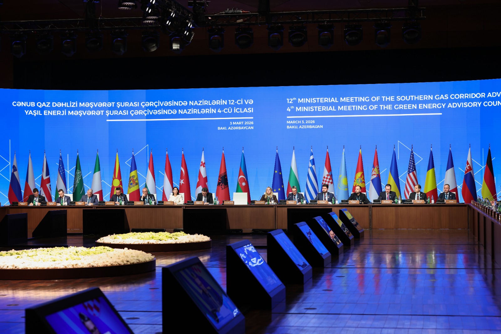 Делегацију Републике Србије на 12. министарском састанку Саветодавног већа Јужног гасног коридора и 4. министарском састанку Саветодавног савета за зелену енергију у Бакуу чинили су помоћник министарке Саша Коковића и државна секретарка у Министарству рударства и енергетике Соња Влаховић.