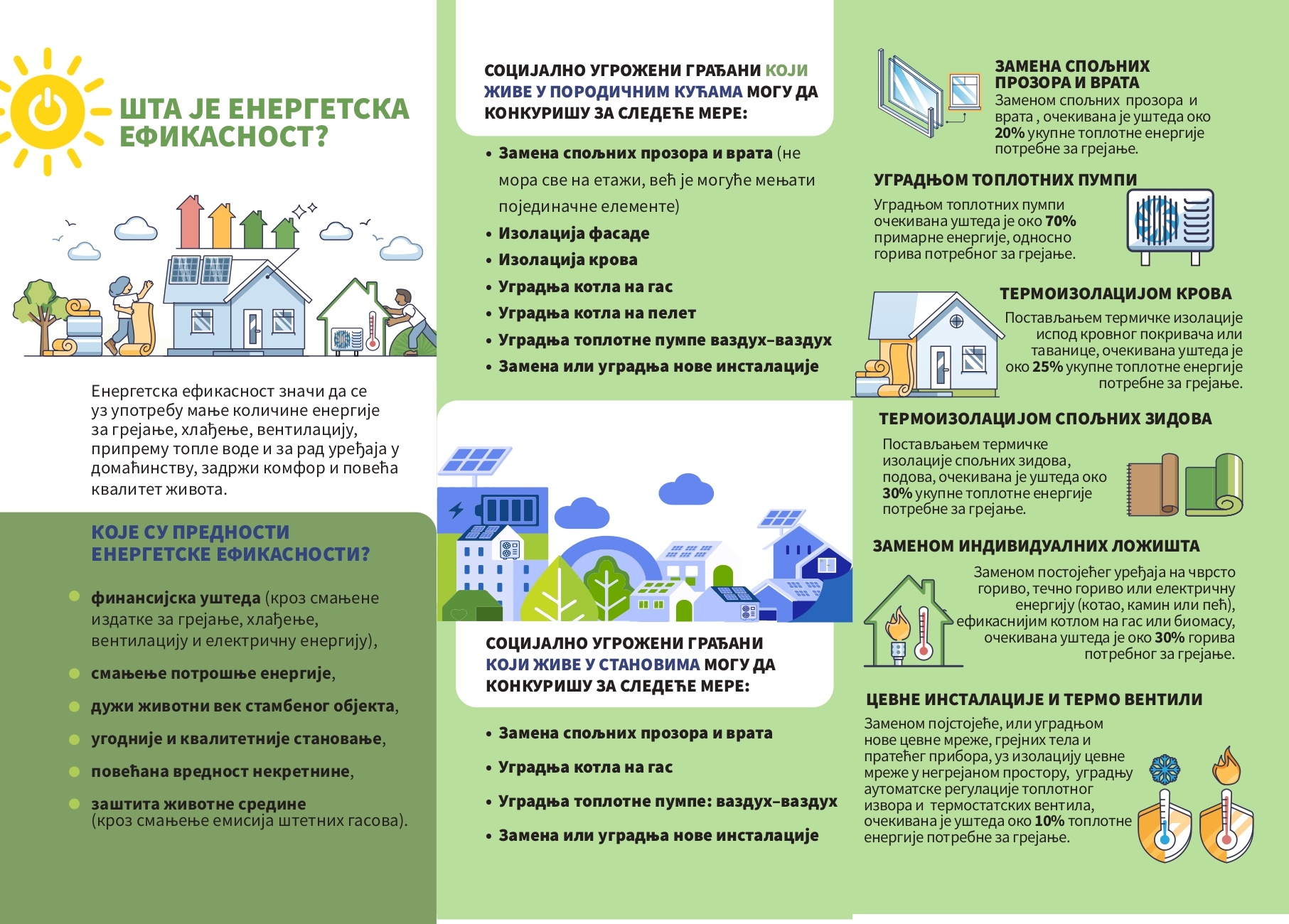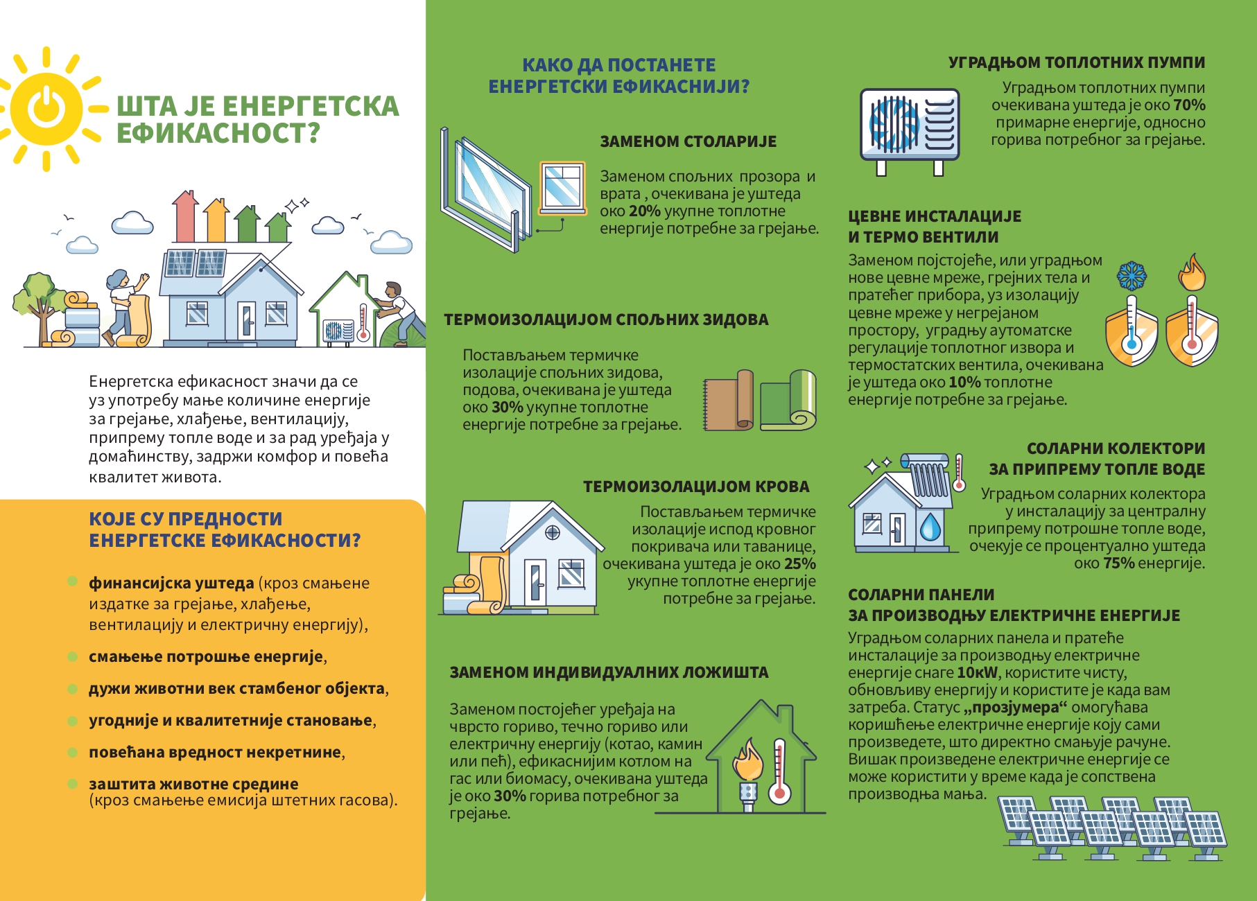 Na energetsku efikasnost gleda se kao na novi izvor energije. Ulaganjem u energetsku efikasnost ne samo da čuvate svoj kućni budžet već i doprinosite globalnim naporima za očuvanje naše planete. Iskoristite priliku da uz pomoć države vaš dom učinite udobnijim i ekonomičnijim i investirajte u veću energetsku efikasnost.