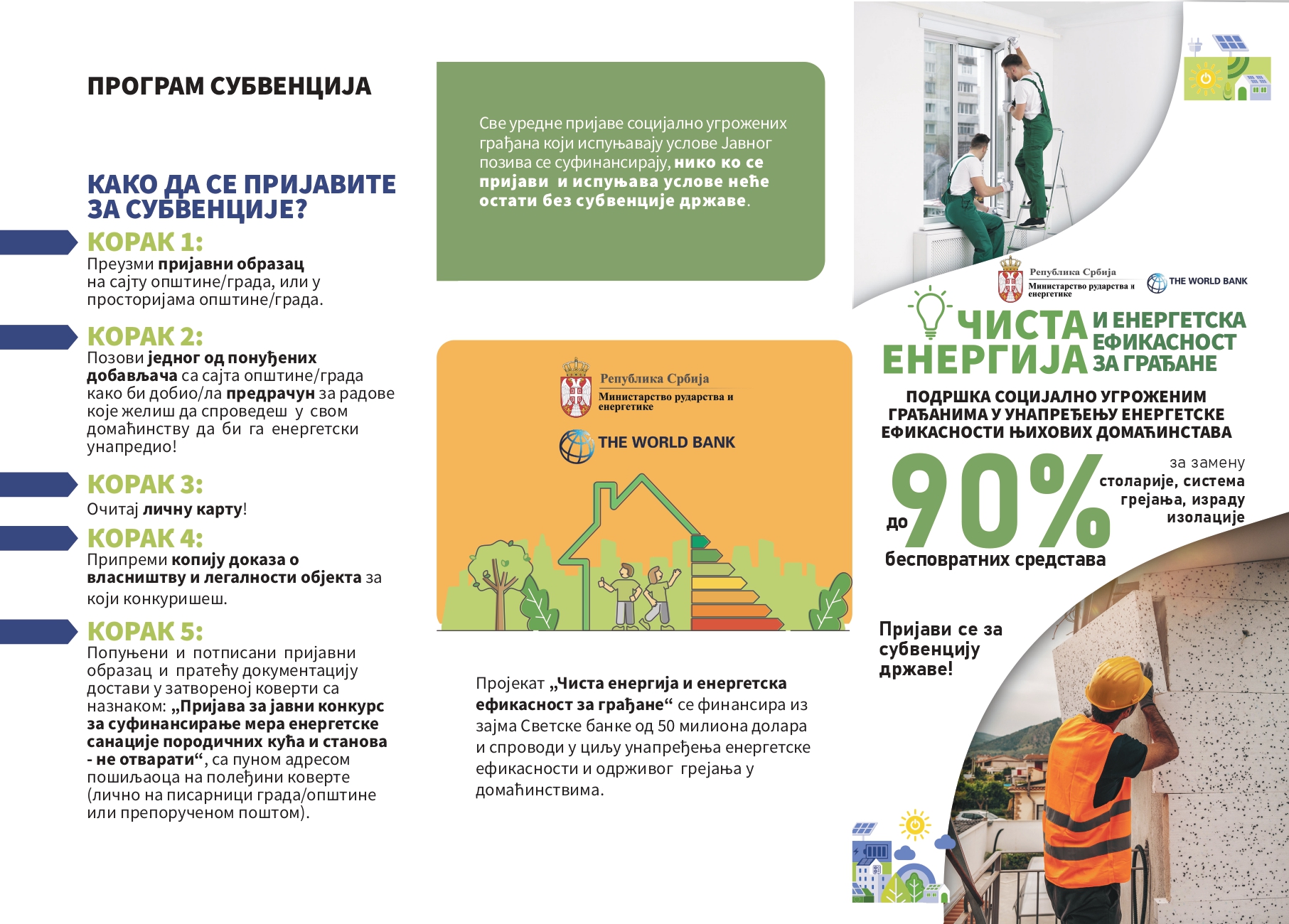 Novina je da će javni pozivi za socijalno ugrožene građane biti raspisani u svim gradovima i opštinama koji učestvuju u programu, koji mogu da dobiju subvencije do čak 90 odsto ukupne vrednosti energetske sanacije domaćinstva.